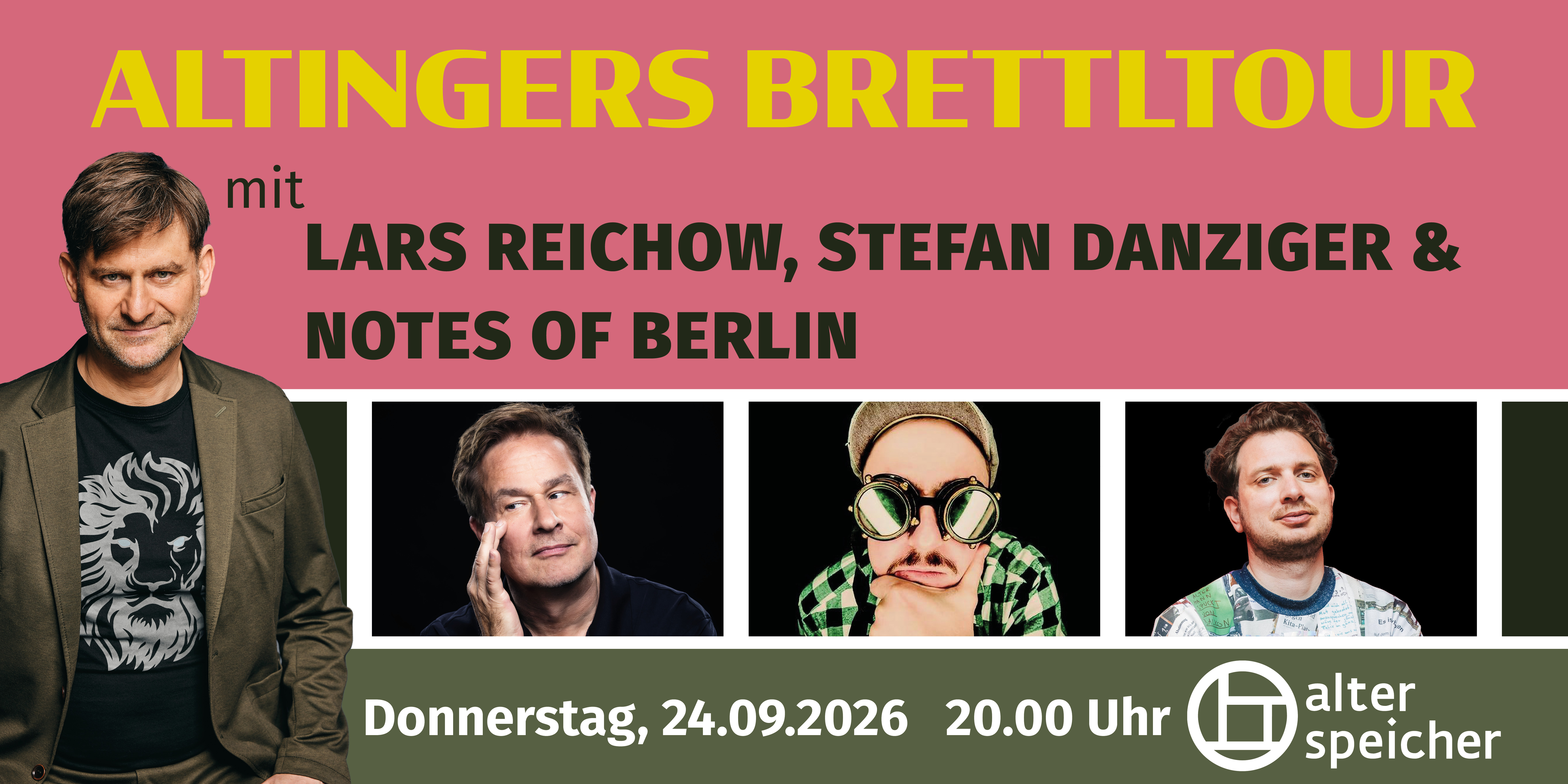 Michael Altinger bringt sein Brettl erneut nach Ebersberg – charmant und witzig wie eh und je führt er durch den Abend. Mit dabei: Lars Reichow mit einer musikalisch-rhetorischen Achterbahnfahrt aus einem Programm Boomerland, Stefan Danziger, der skurrile Blicke auf Geschichte und Alltag vereint und Joab Nist / Notes of Berlin, der die Zettelpoesie und absurden Fundstücke des urbanen Alltags live auf die Bühne bringt.