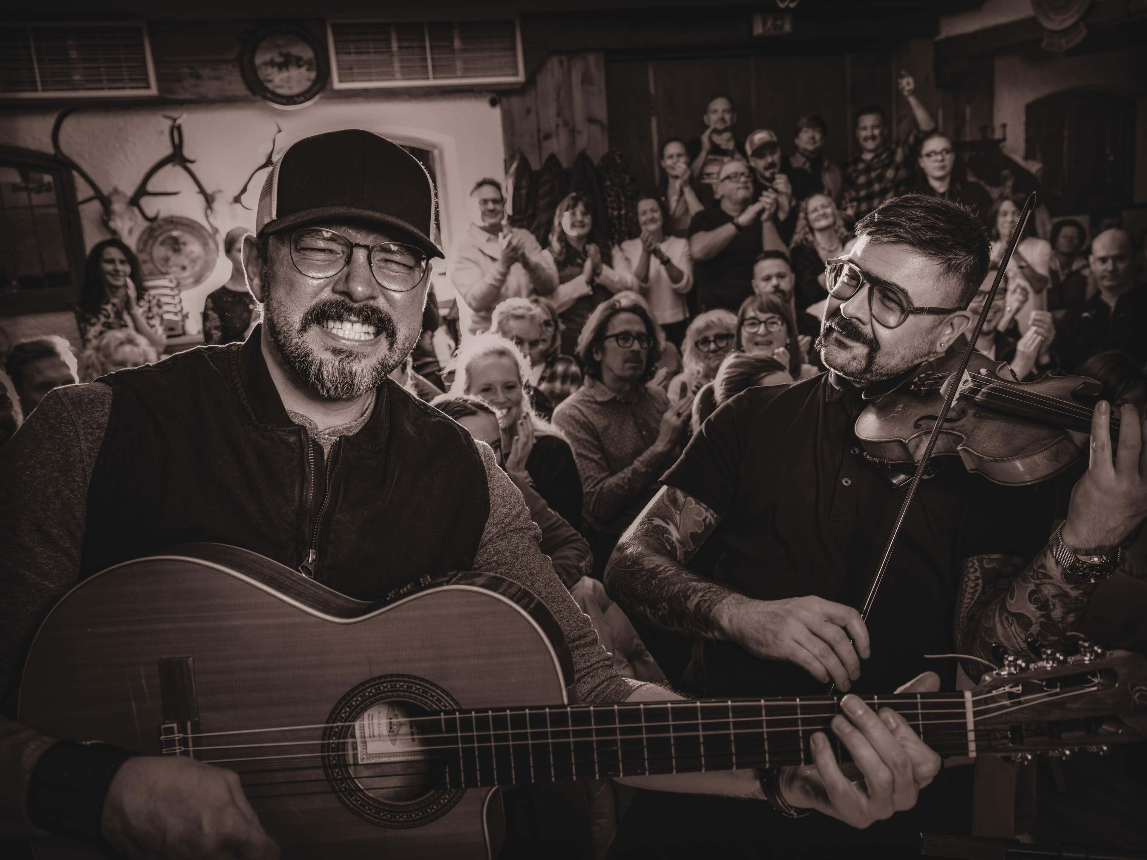 Was in Staudach-Egerndach über die Jahre zum legendären Heimspiel geworden ist, kommt nun auf die Bühnen der Republik: ein Abend in intimer Atmosphäre, nah am Publikum, fast wie am Lagerfeuer. Keine Distanz – nur handgemachter Gypsy-Sound, singende Geigen, treibende Gitarren, Kontrabass, Schlagzeug und Stimmen, die Geschichten erzählen, wie sie nur unterwegs entstehen können.